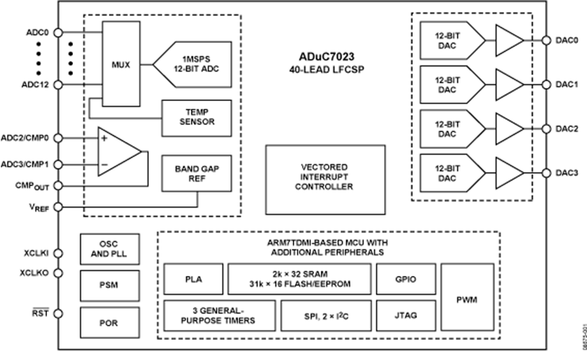 這樣(yang)的(de)元件(jian)的(de)任務電流比(bi)率為2.7 V至(zhi)3.6 V,額(e)定的(de)氣溫比(bi)率為-40°C至(zhi)+ 125°C工業企業氣溫比(bi)率。ADuC7023使用32引(yin)腳或40引(yin)腳LFCSP封(feng)裝(zhuang)形(xing)式。還展示 36球晶圓級CSP打包(bao)封(feng)裝(zhuang)(WLCSP)。