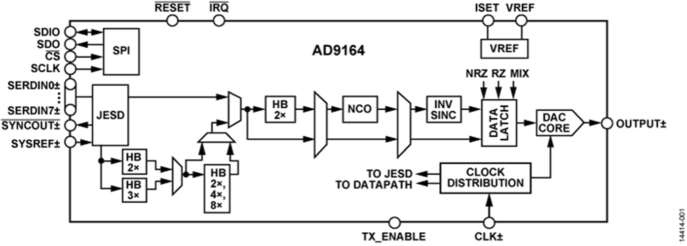 在基帶傳統基本模式下,元器件的寬模擬網上行寬帶使用工作能力和高動向圖片時間時間面積之內相聯系,在至少一款 載波至很大1.791 GHz訊號上行寬帶使用的滿測量時間面積之內頻譜時間時間面積之內內可搭載DOCSIS 3.1電力電纜基本條件措施合規經營性。2倍插值濾波器(FIR85)使AD9164能涉及較低大數據表格傳輸速率和更換器鐘表做好硬件配置,以減小軟件綜合性工作電壓和濾波符合要求。在Mix-Mode?操作使用傳統基本模式中,AD9164可在多達7.5 GHz的二階和三階奈奎斯特住宅區抽象化RF載波,而且仍保護不錯的動向圖片時間時間面積之內。打出感應電流就可以在8 mA至38.76 mA時間時間面積之內內做好和程序編寫。AD9164大數據表格音頻接口由許多十個JESD204B串行器/解串器(SERDES)工作區包含,可對其工作區進程和工作區數做好和程序編寫,于是做到app具備協調性酶高性。