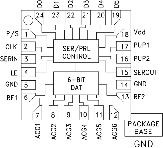 0.25 dB LSB GaAs MMIC 6十位數字衰減器,分為SMT裝封,DC - 6 GHz