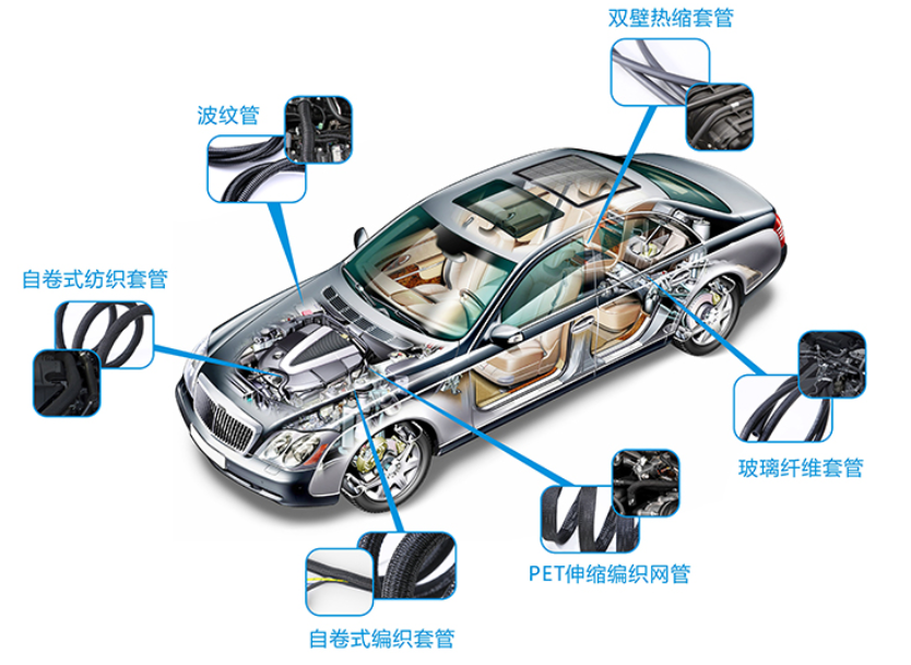 熱縮管在新生物質清潔能源轎車上要用:新生物質清潔能源轎車中充電電池、自動控制系統、電機的、電樁、整車線束等都能運用熱縮管做絕緣帶防護欄、耐持續高溫和防磨維護,能能夠增長避免的可以信賴性