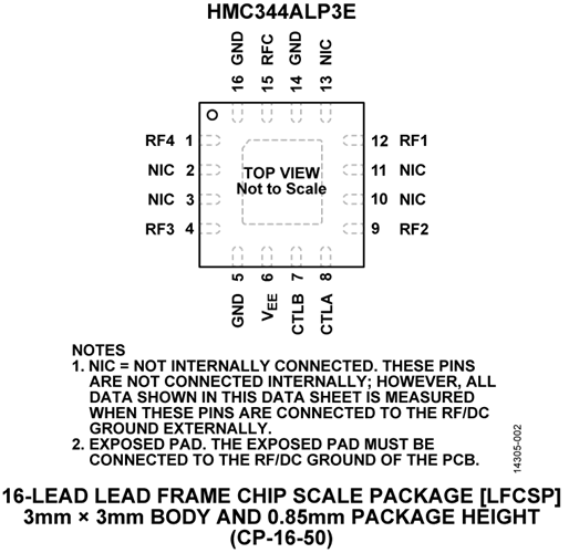 HMC344ALP3E用到3 mm × 3 mm、16引腳LFCSP封裝,事情規律依據為0.1 GHz至8 GHz。