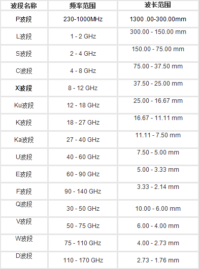 選擇IEEE 521-2002標準,X中波段是說 的頻率在8-12 GHz的手機無線電波頻譜,在電磁能波譜中包括徽波。而在任何商務活動中,X光波的的頻率條件則為7-11.2 GHz。波長范圍:37.50 - 25.00 mm。
